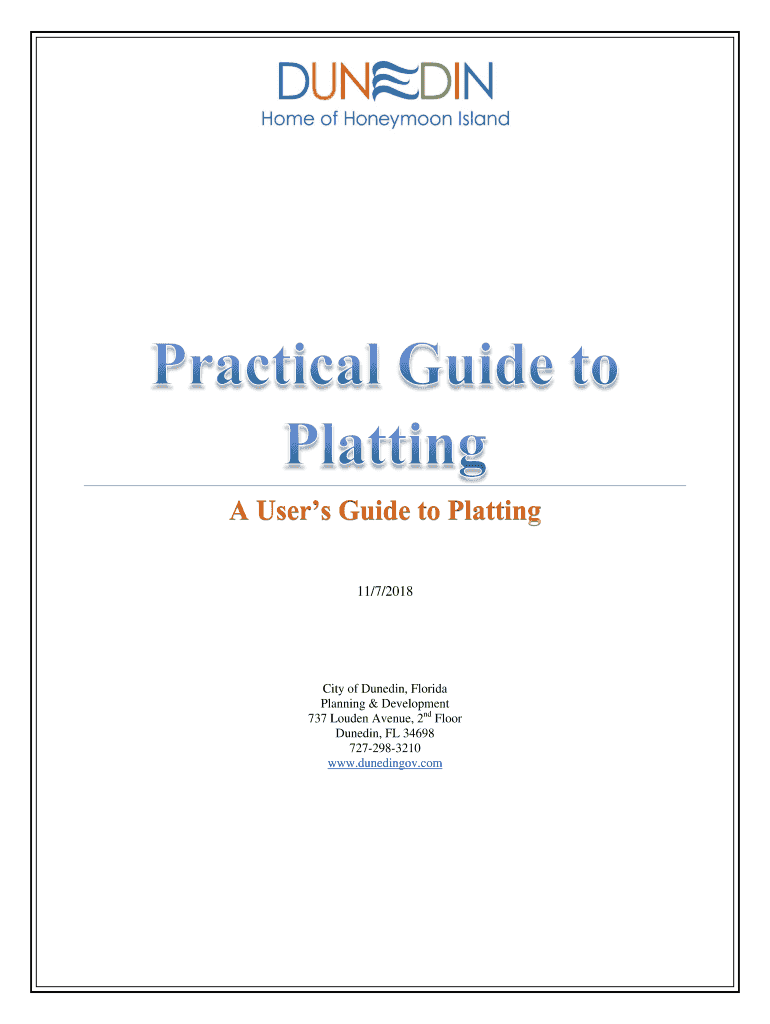 11/7/2018City of Dunedin, Florida Planning & Development 737 Louder Avenue, 2nd Floor Dunedin, FL 34698 7272983210 www.dunedingov.comTable of Contents Plat Required:............................................................................................................................................