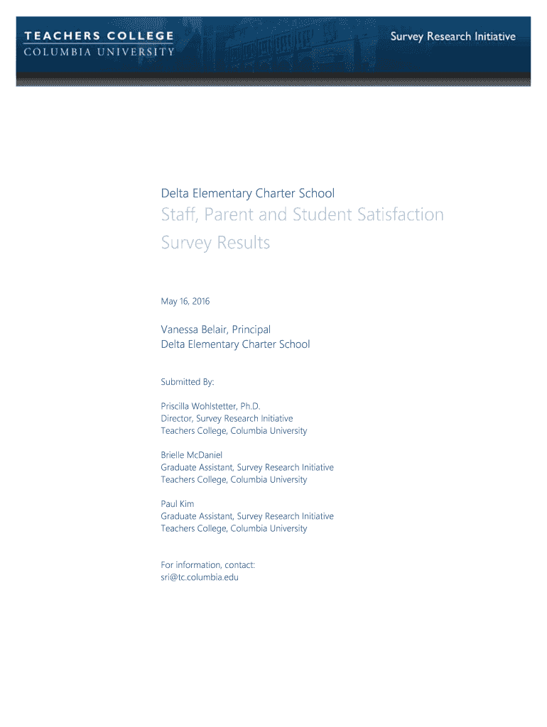 Delta Elementary Charter SchoolStaff, Parent and Student Satisfaction