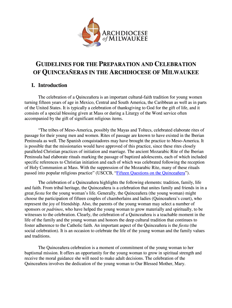 OF QUINCEAÑERAS IN THE ARCHDIOCESE OF MILWAUKEE