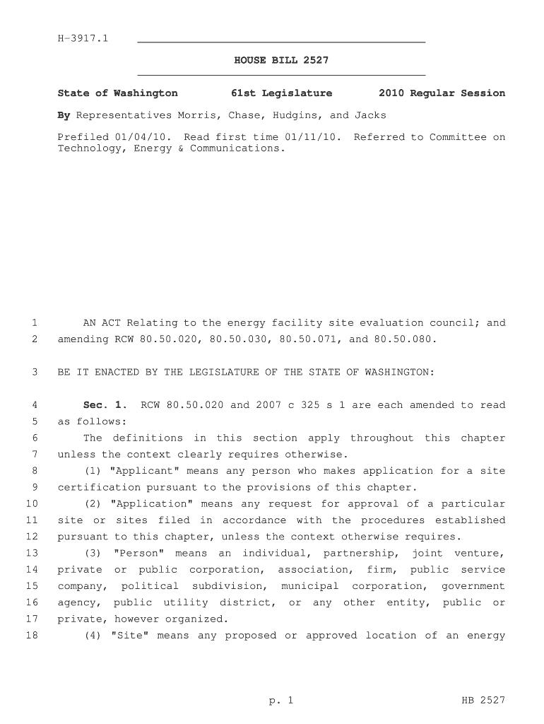H3917.1 HOUSE BILL 2527 State of Washington 61st Legislature 2010 Regular Session By Representatives Morris, Chase, Huggins, and Jacks Prefixed 01/04/10. Read first time 01/11/10. Technology, Energy
