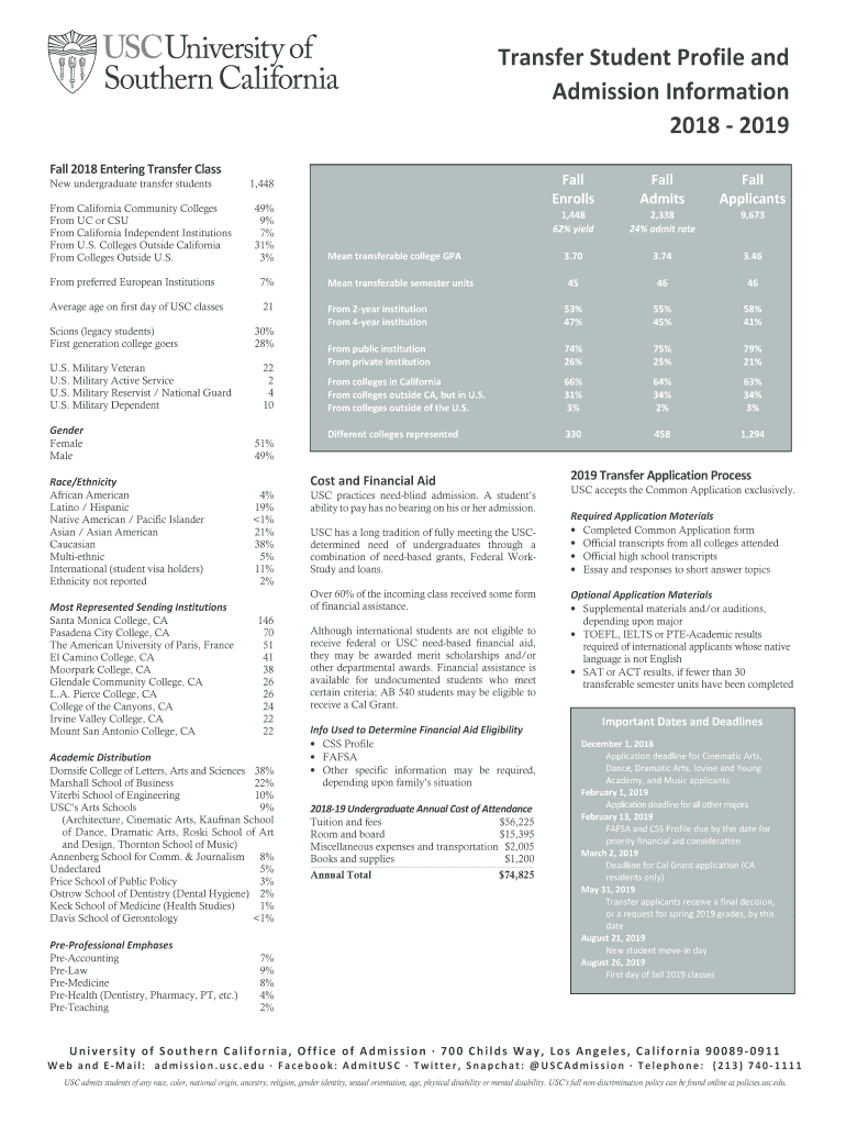 Transfer Student Profile and Admission Information 2018 2019 Fall 2018 Entering Transfer Class New undergraduate transfer students From California Community Colleges From UC or CSU From California