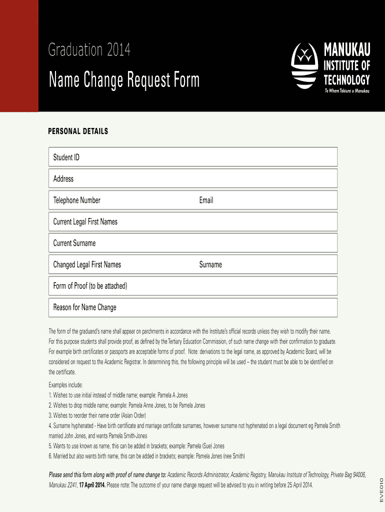Get the free Name Change Request Form - Manukau Institute of Technology