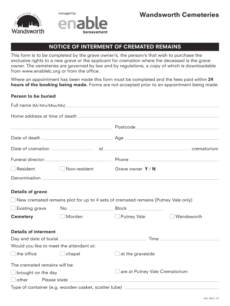 This form is to be completed by the grave owner/s, the person/s that wish to purchase the