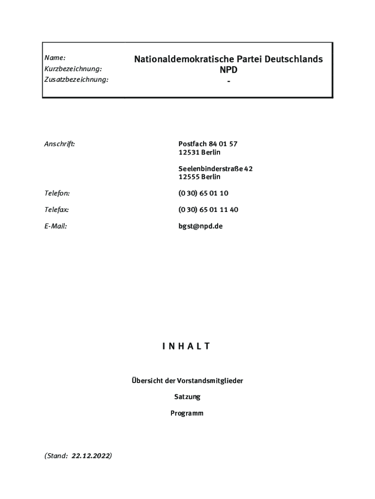 Zusatzbezeichnung:Antichrist:Nationaldemokratische Parted Deutschland