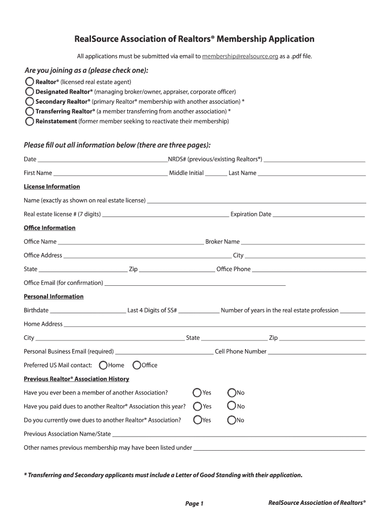 Get the free NEW REALTOR Membership Application - RealSource ...