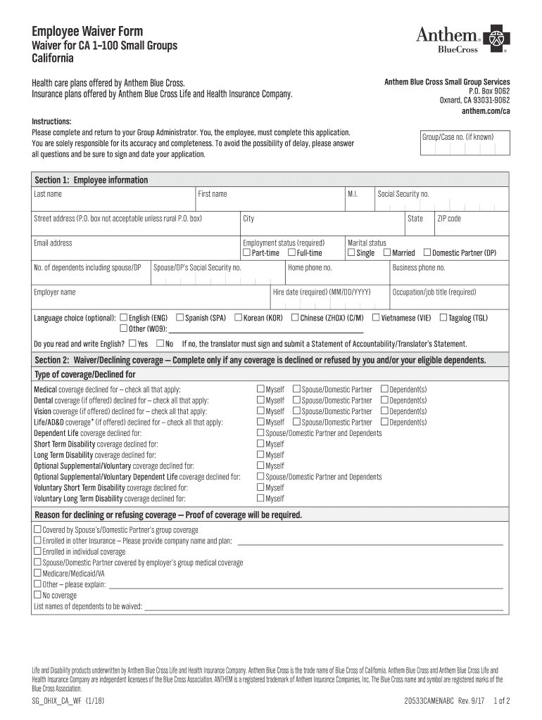 Get the free Employee Waiver Form - Rogers Benefit Group