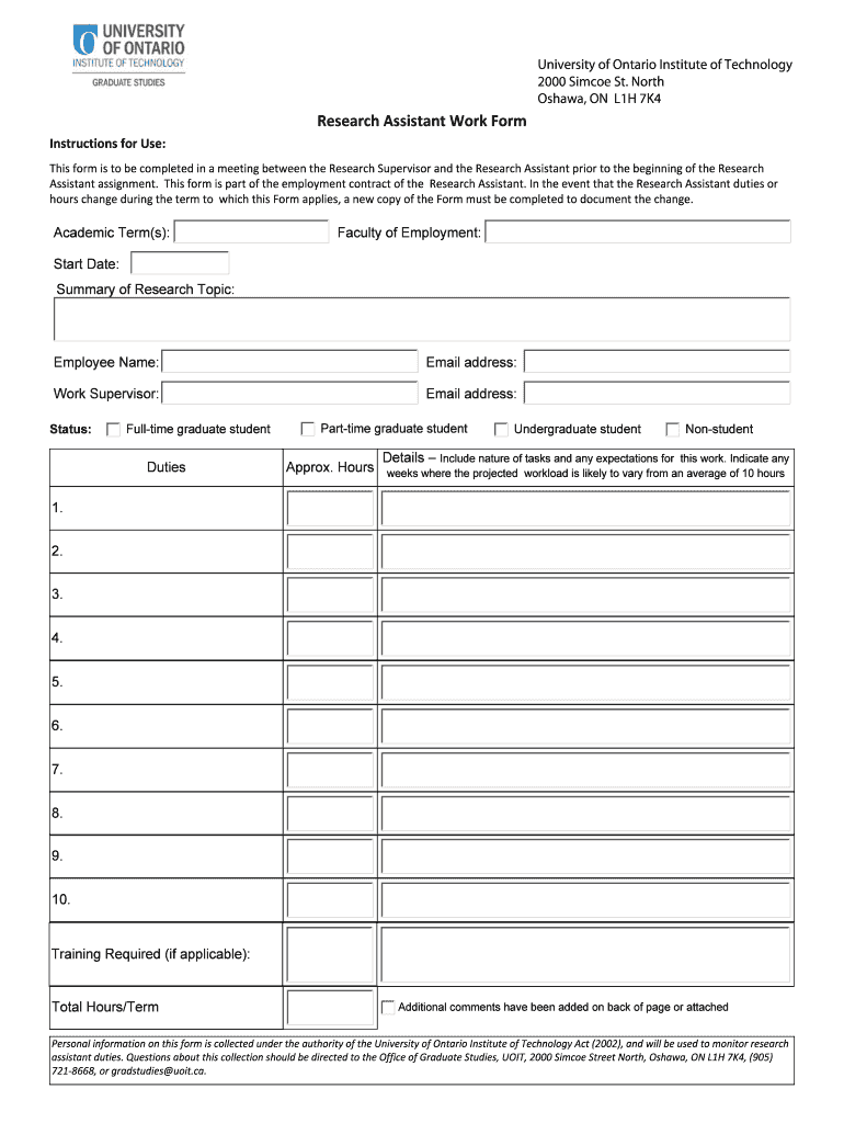 23 Jul 2014 ... This form is part of the employment contract of the Research Assistant. ... hours change during the term to which this Form applies, a new ... Faculty of Employment: ... directed to