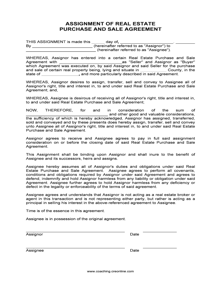 Get the free Assignment of breal estate purchaseb and sale bagreementb - Coaching