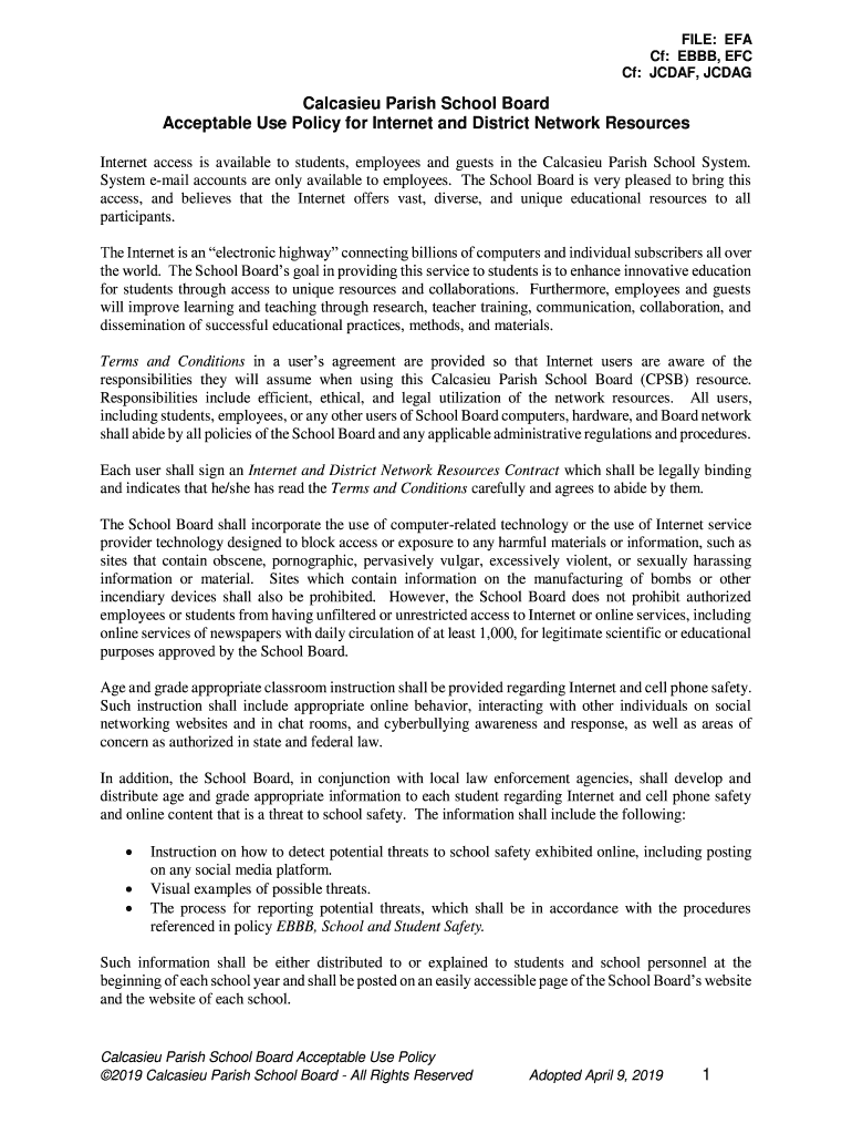 Get the free EFA, Acceptable Use Policy for Internet and District Network Resources