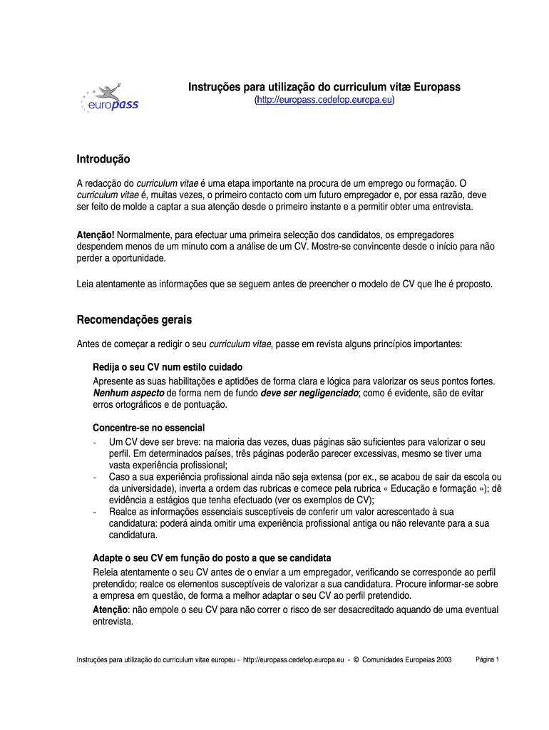 Qualquer pessoa que esteja em busca de emprego na União Europeia pode utilizar o Modelo de CV Europass. Não há requisitos específicos de elegibilidade.