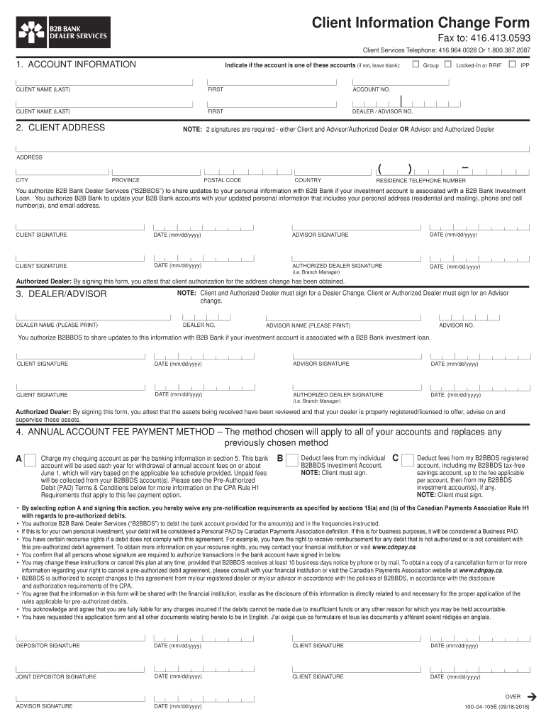 Get the free Client Information Change Form - B2B Bank