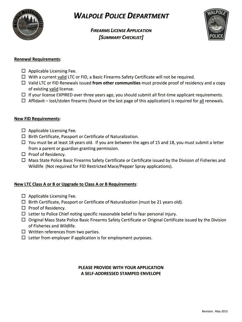 Get the free Massachusetts Firearms License Application
