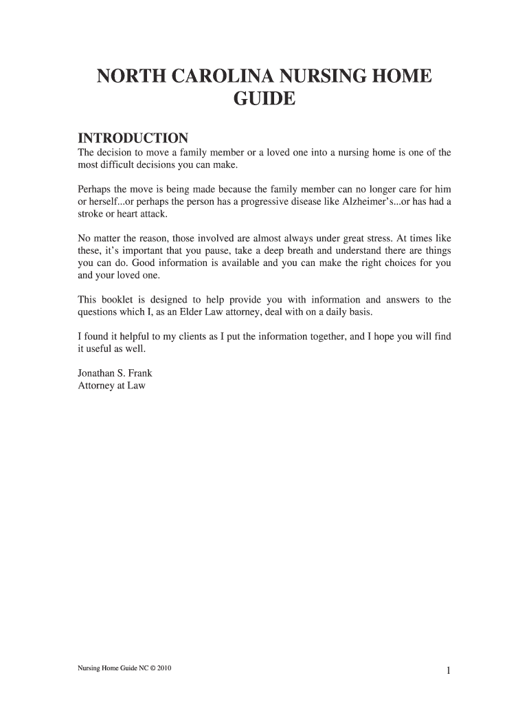 Get the free NORTH CAROLINA NURSING HOME GUIDE - Charlotte NC Estate