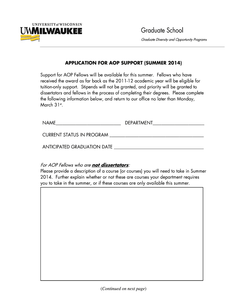 Get the free AOP Application AOPSupport - University of Wisconsin Milwaukee - graduateschool uwm