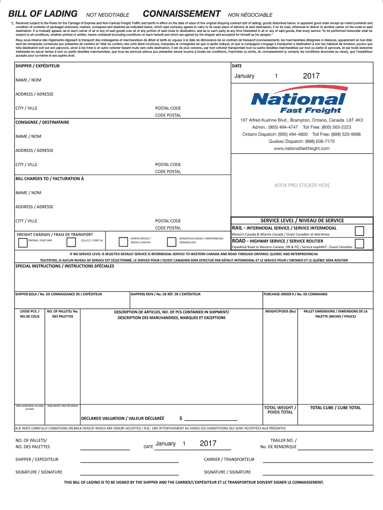 BILL OF LADING NEGOTIABLECONNAISSEMENTNON NGOCIABLE1. Received subject to the Rules for the Carriage of Express and Carload Freight Traffic and tariffs in effect on the date of issue of this original
