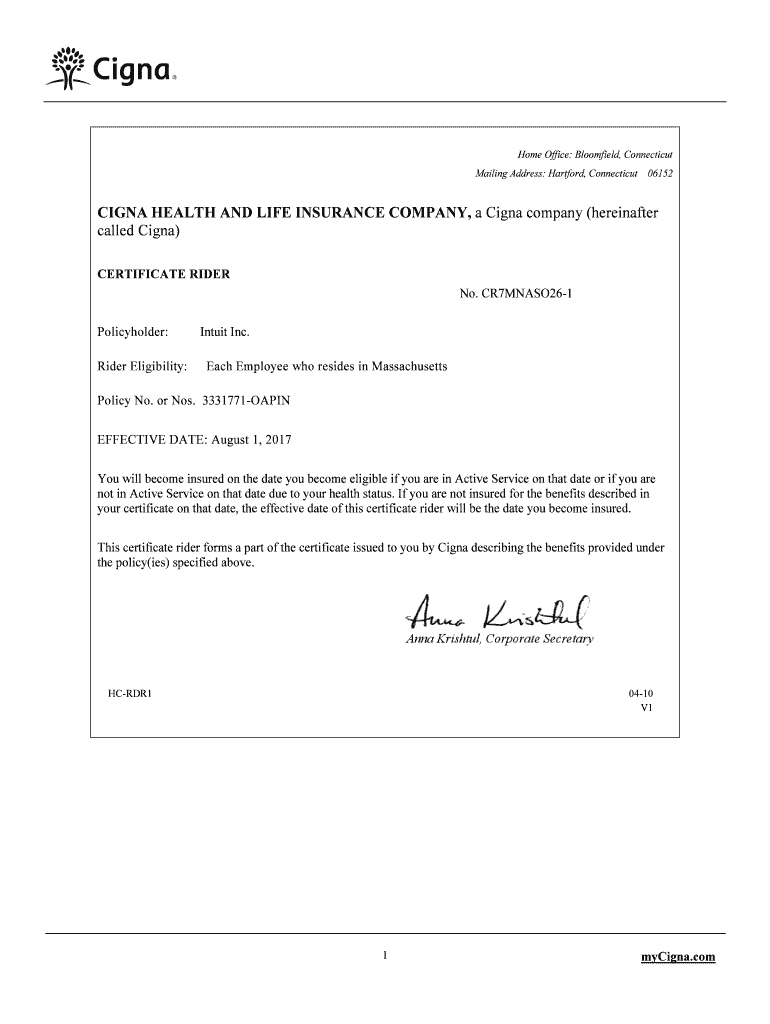 Mailing Address: Hartford, Connecticut06152CIGNA HEALTH AND LIFE INSURANCE COMPANY, a Cagney company (hereinafter