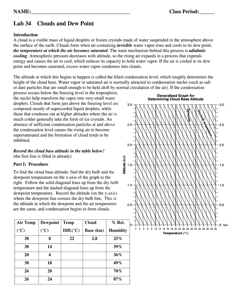The Clouds and Dew Point Lab serves as an educational tool tailored to enhance students' comprehension of meteorology concepts, particularly regarding cloud formation and dew point temperature. This meteorology lab activity fosters a hands-on approach to learning, allowing students to actively engage with critical atmospheric science topics. Such interactive experiences encourage deeper connections to scientific principles, helping students apply theoretical knowledge to practical scenarios.