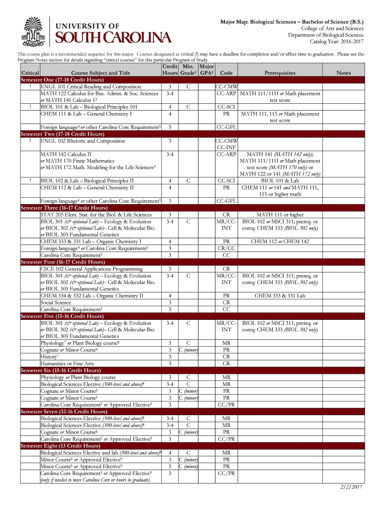 Major Map: Biological Sciences Bachelor of Science (B.S.) College of Arts and Sciences Department of Biological Sciences Catalog Year: 20162017 This course plan is a recommended sequence for this