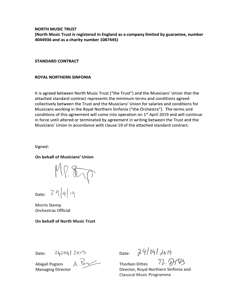 4044936 and as a charity number 1087445)STANDARD CONTRACTUAL NORTHERN Sinfonia is agreed between