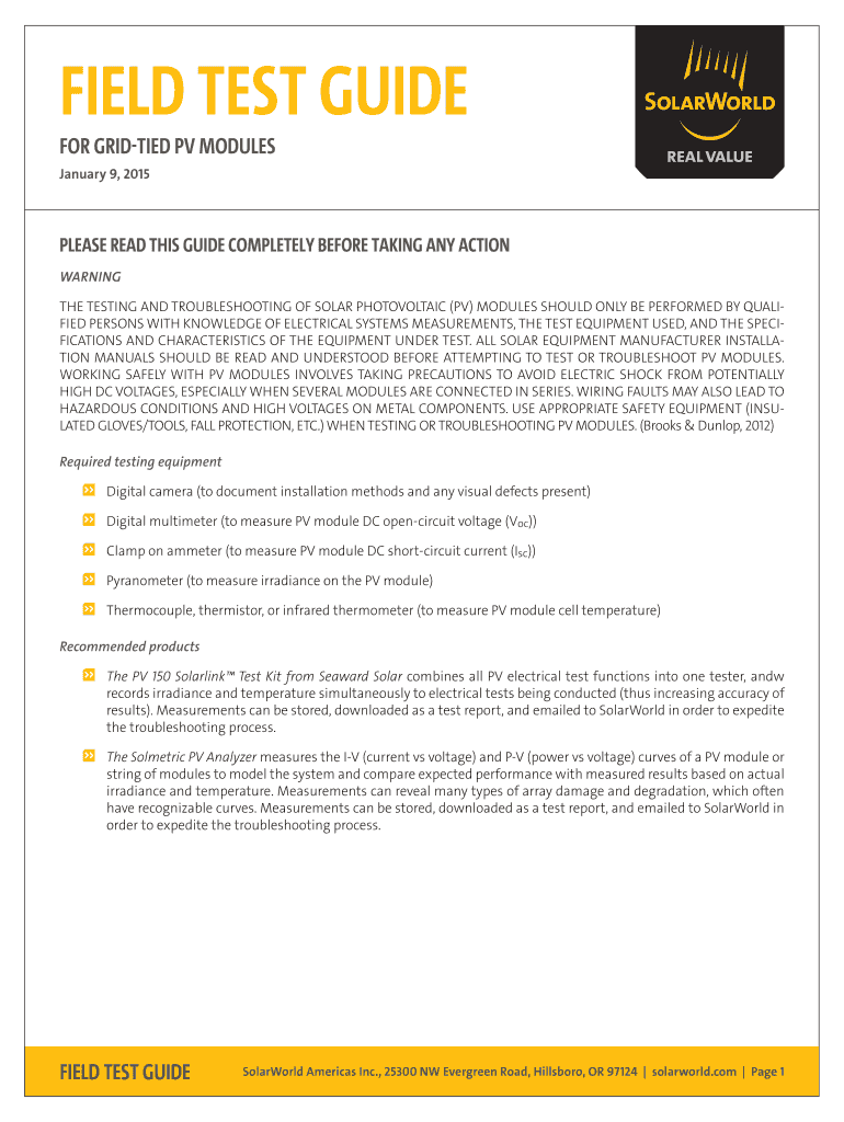 Get the free field test guide - SolarWorld Americas