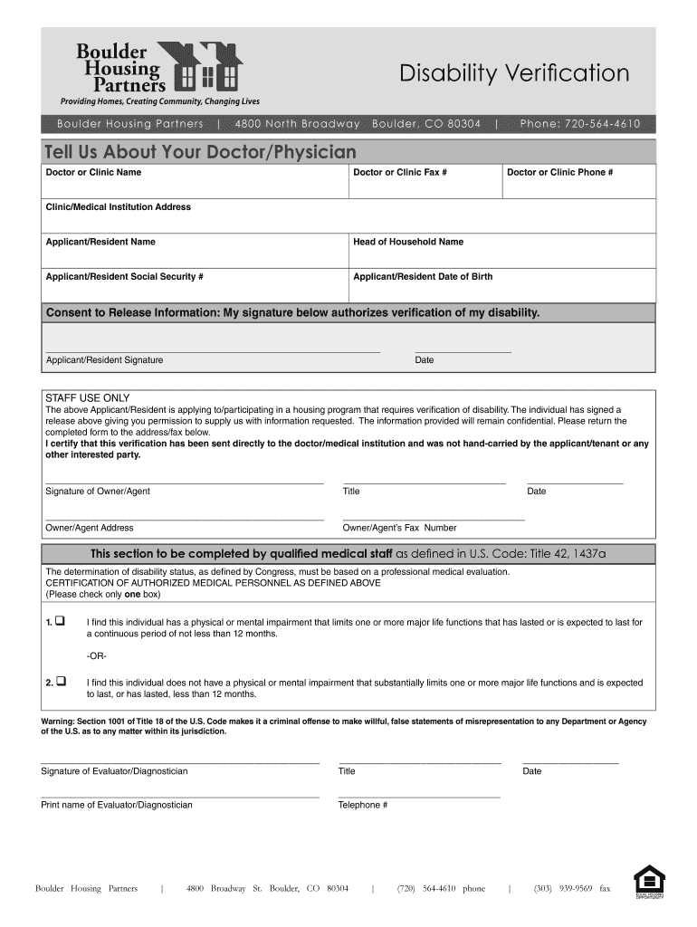 Get the free Disability Verification - Boulder Housing Partners - boulderhousing