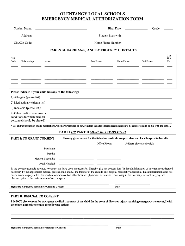 Get the free Emergency Medical Form - Olentangy Local Schools - olentangy k12 oh