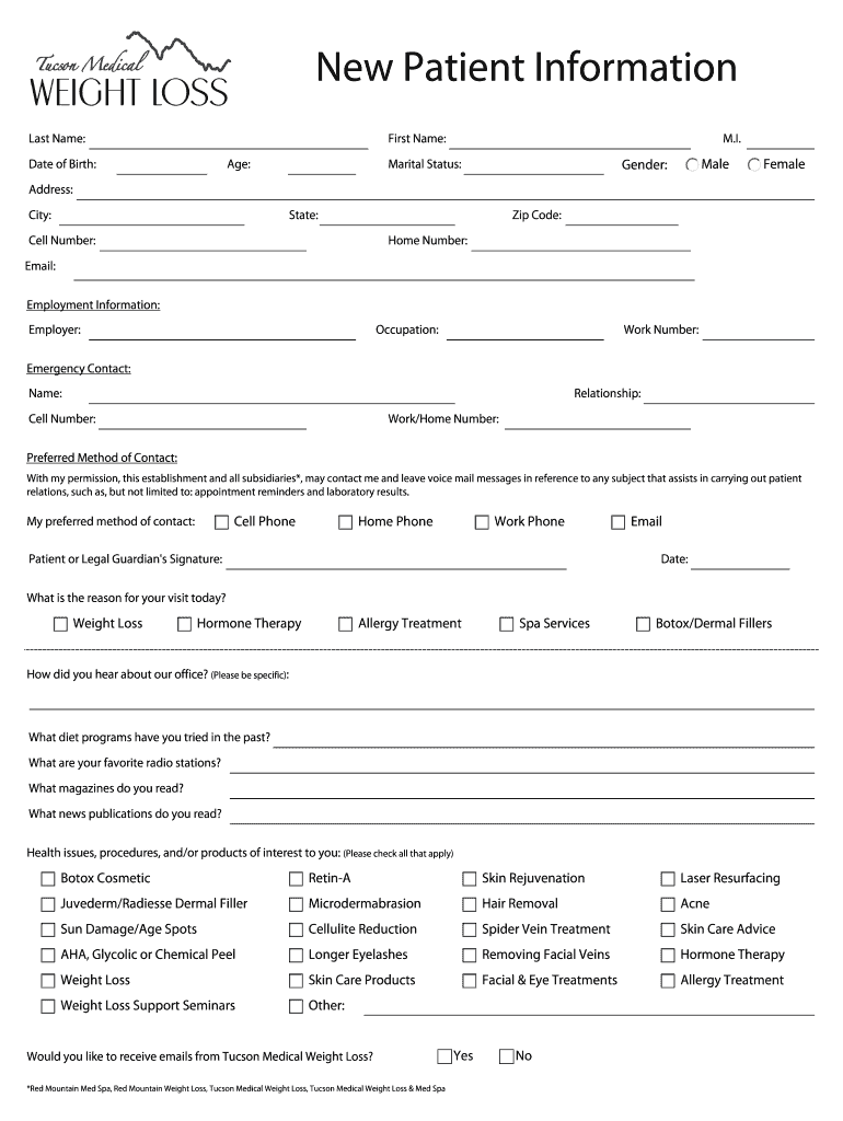 Get the free New Patient Paperwork - Tucson Medical Weight Loss