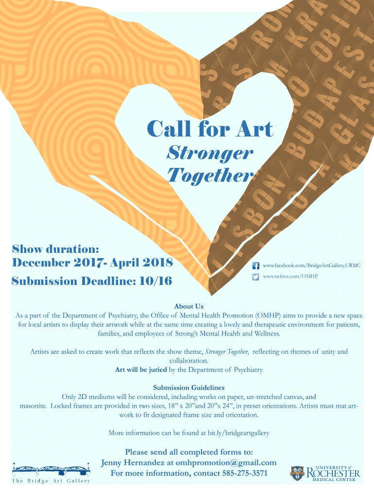 Of the Department of Psychiatry Office of Mental Health PromotionStronger Together SubmissionForm Name: Date: Address: Phone: Email: Website: Pleaseincludemycontactinformationintheartistlist:Yes No