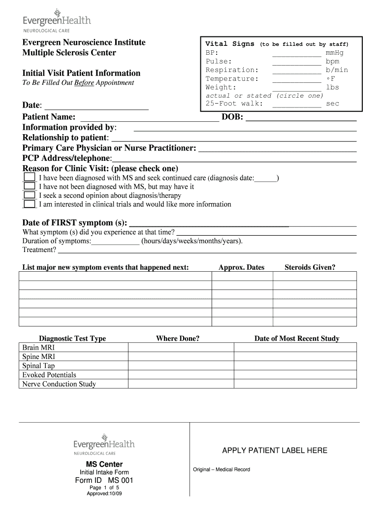 Get the free Multiple Sclerosis Center Initial Intake Form