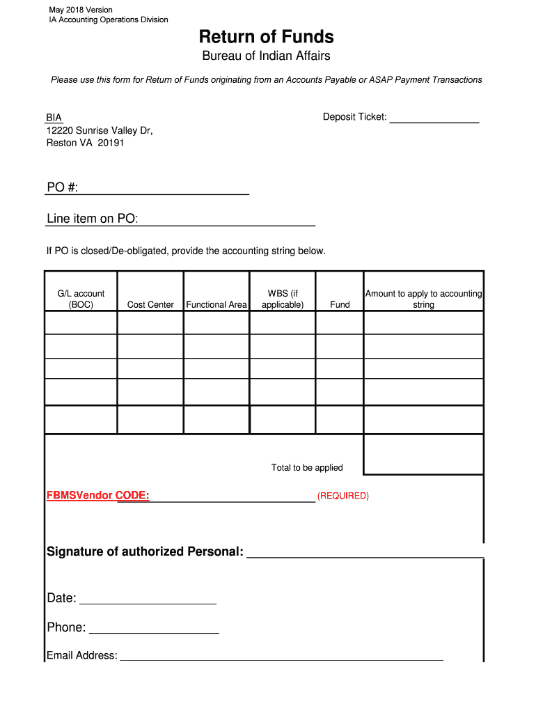 Please use this form for Return of Funds originating from an Accounts Payable or ASAP Payment TransactionsDeposit