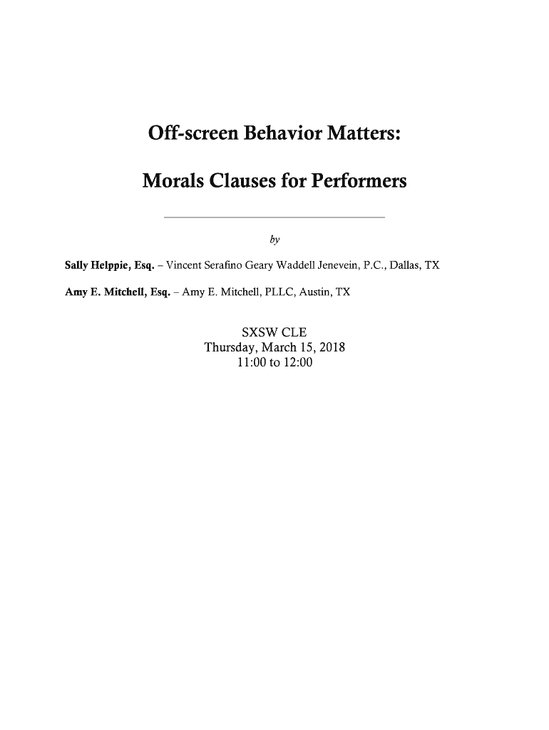 Get the free Off-screen Behavior Matters: Morals Clauses for Performers
