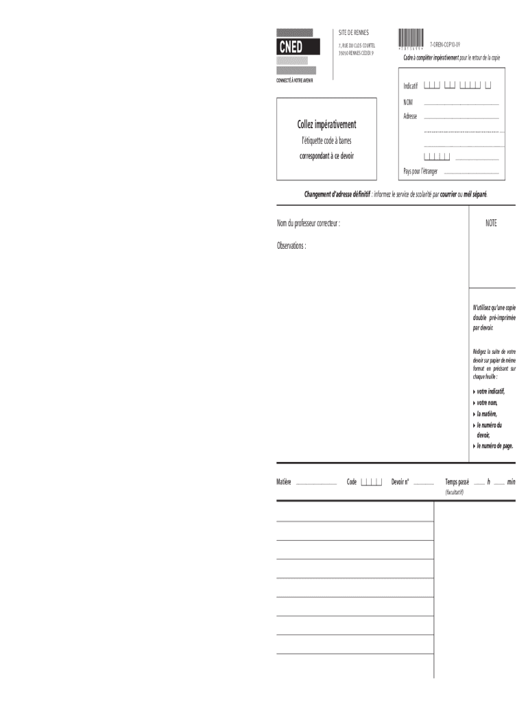 SITE DE RENNES 7, RUE DU CLOSE COURTED 35050 RENNES CEDEX 9×7015699×7ORENCOP1009Cadre computer improvement pour LE detour DE la copieIndicatifCollez improvement etiquette code barres correspondent