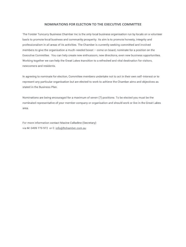 Get the free nominations for election to the executive committee - Forster ...