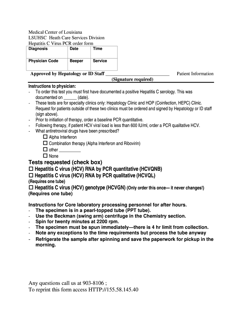 Comprehensive Guide to HCV PCR Order Form