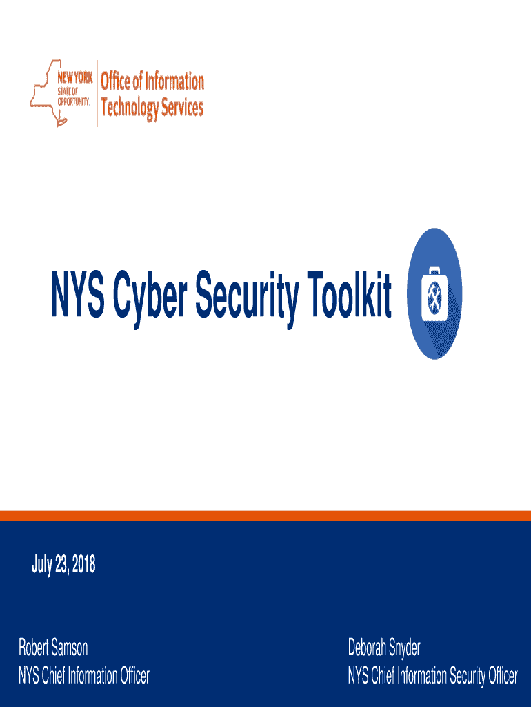 NYS Cybersecurity Toolkit July 23, 2018, Robert Samson NYS Chief Information Officer Deborah Snyder NYS Chief Information Security OfficerWelcome & Opening RemarksOrganizational Introductions New