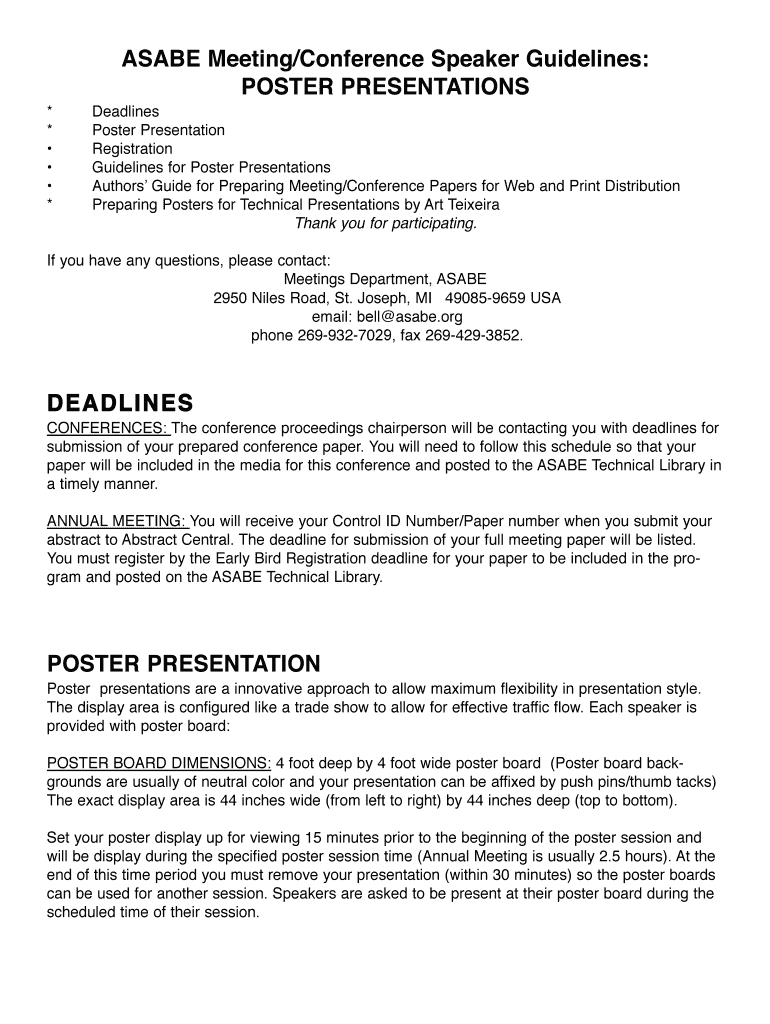 SAME Meeting/Conference Speaker Guidelines: POSTERPRESENTATIONS * * *Deadlines Poster Presentation Registration Guidelines for Poster Presentations Authors Guide for Preparing Meeting/Conference Papers