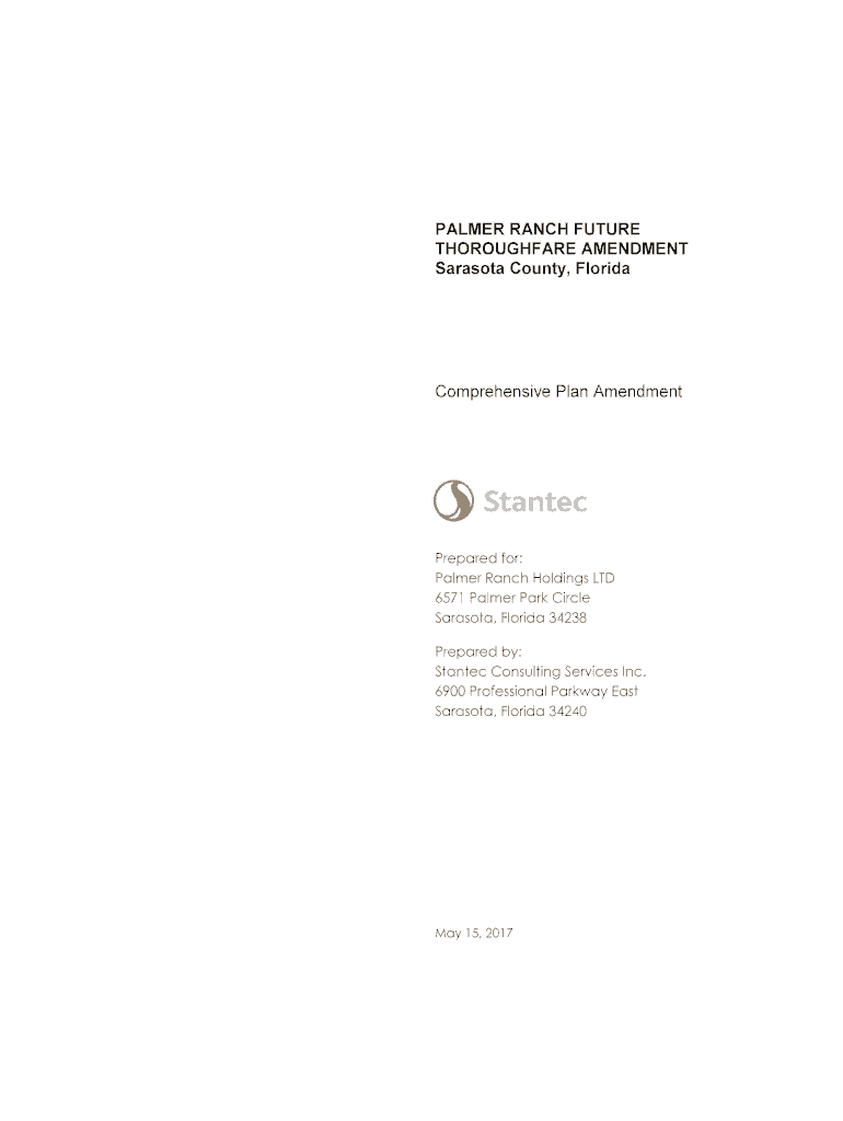 Information such as proposed road alignments, right-of-way requirements, intersection designs, and traffic impact studies may need to be reported on the future thoroughfare in Palmer Ranch.