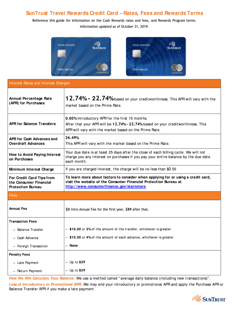 How to fill out suntrust travel rewards credit