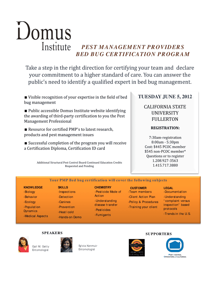 Get the free PEST MANAGEMENT PROVIDERS BED BUG CERTIFICATION PROGRAM