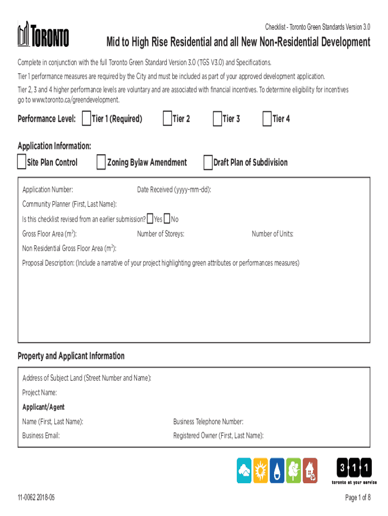 Canada Toronto Green Standard Checklist: Mid to High Rise Residential and all New Non-Residential Development 2018 free printable template