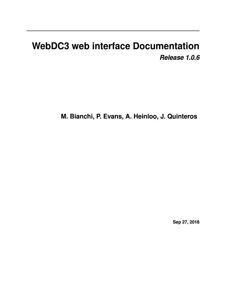 WebDC3 web interface Documentation Release 1.0.6M. Bianchi, P. Evans, A. Halloo, J. QuinterosSep 27, 2018Contents1The WebDC3 web interface generator2User Guide 2.1 Introduction. . . . . . 2.2 Getting