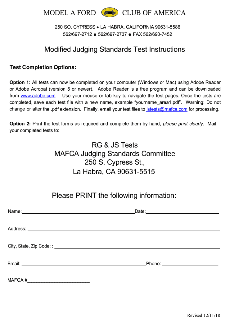 Get the free RG & JS Tests MAFCA Judging Standards Committee 250 S ...