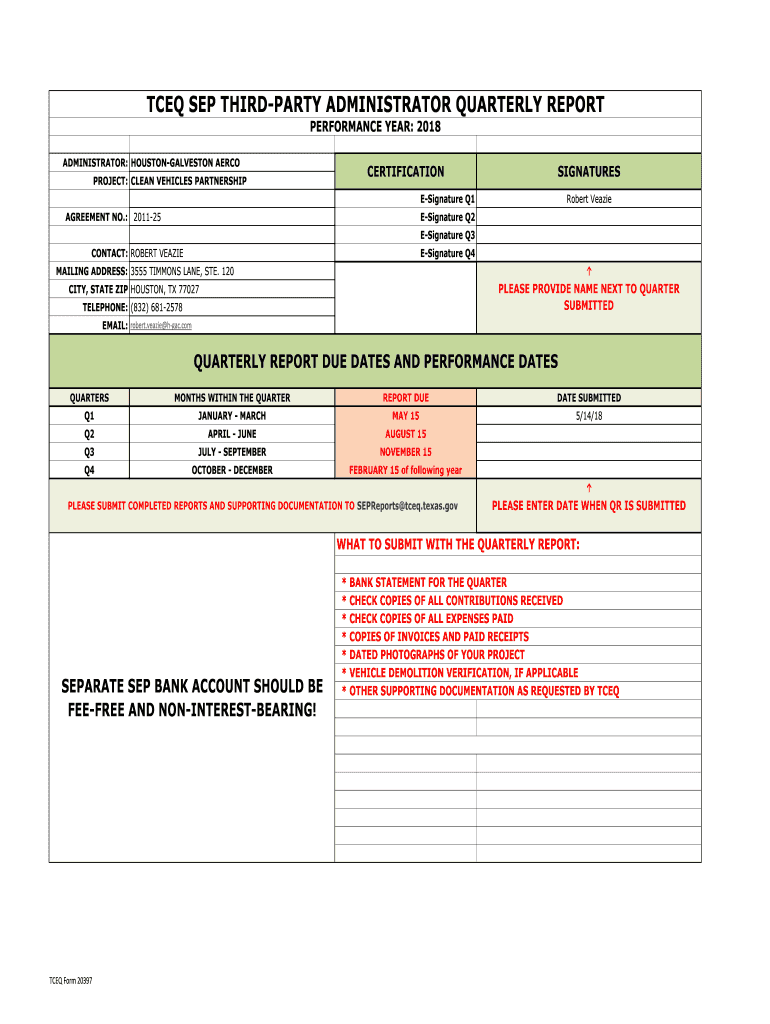 ADMINISTRATOR: HOUSTONGALVESTON AERCOCERTIFICATIONPROJECT: CLEAN VEHICLES PARTNERSHIPSIGNATURESESignature Q1