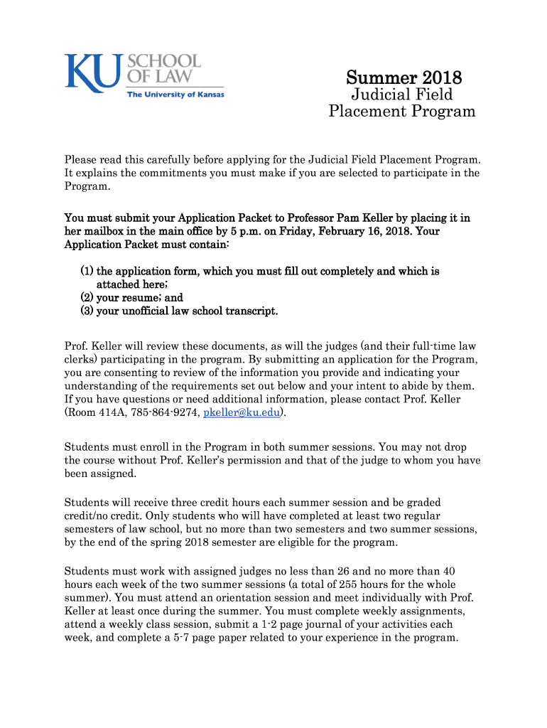 Please read this carefully before applying for the Judicial Field Placement Program.