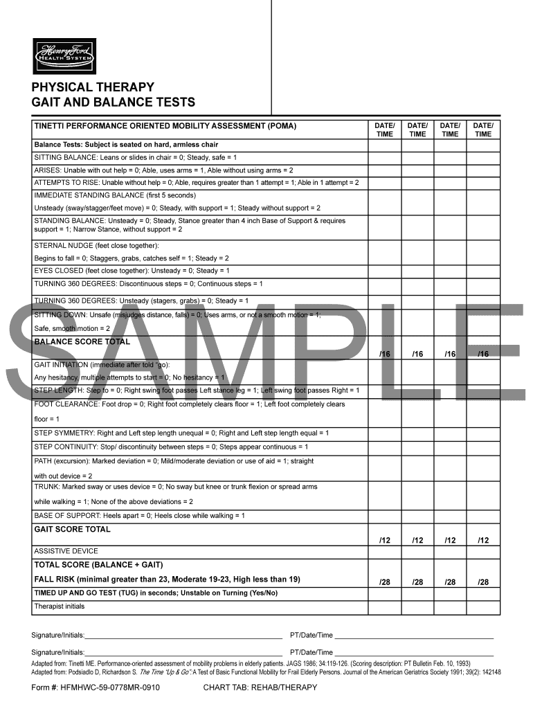 Get the free PHysical THeraPy GaiT and balance TesTs - hfhs-formslibraryorg