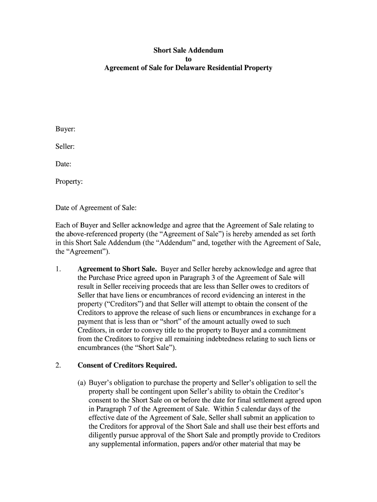Key Features of the Short Sale Addendum for Delaware Residential Property