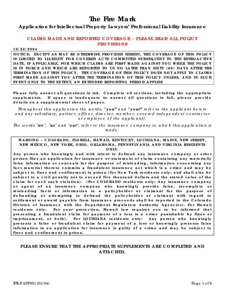 Get the free Intellectual Property Lawyers Professional Liability Insurance Application