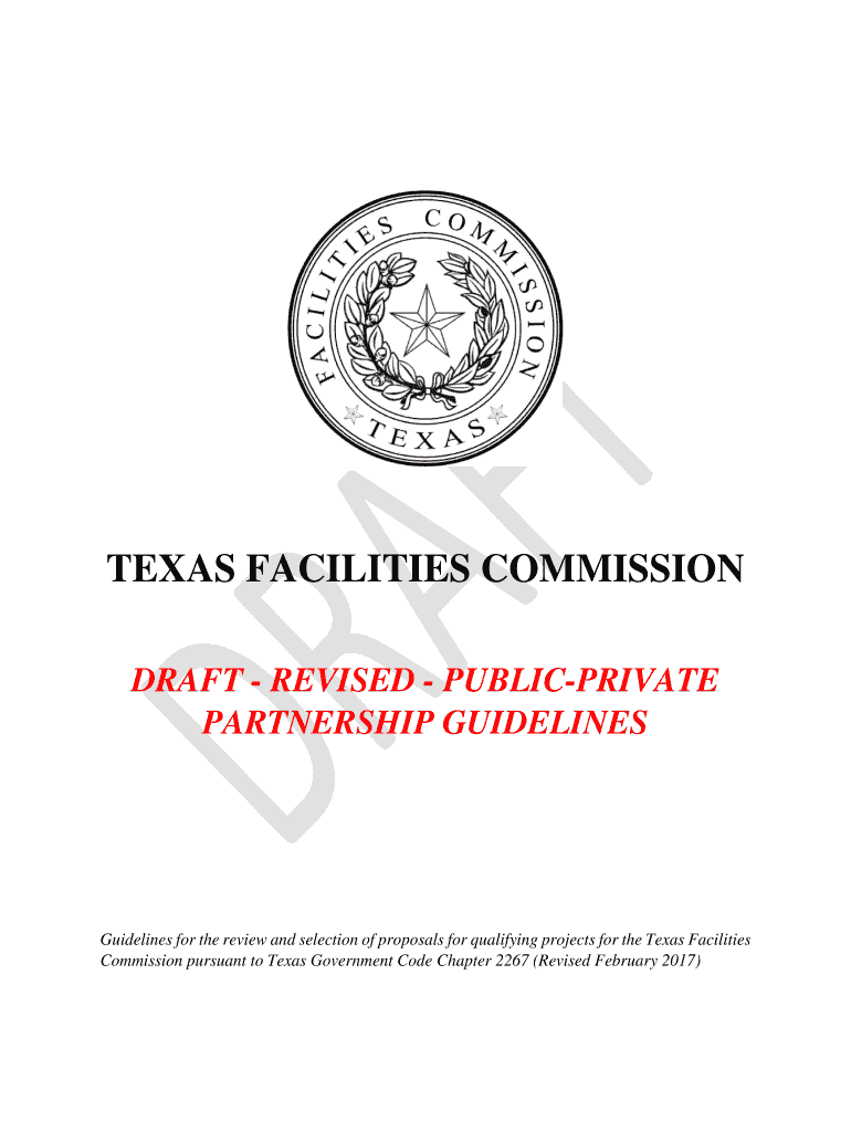 TEXAS FACILITIES COMMISSION DRAFT REVISED PUBLICPRIVATE PARTNERSHIP GUIDELINESGuidelines for the review and selection of proposals for qualifying projects for the Texas Facilities Commission pursuant