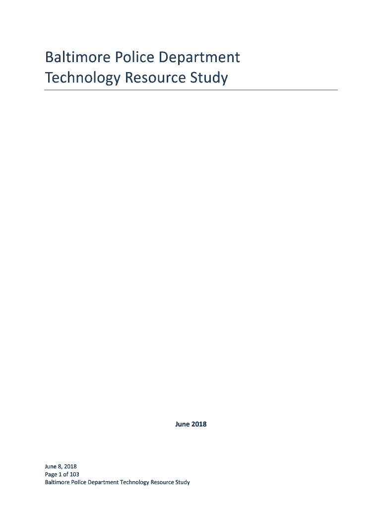 Baltimore Police Department Technology Resource Study June 2018June 8, 2018-Page 1 of 103 Baltimore Police Department Technology Resource Suitable of Contents Introduction ...............................................................................................................................................