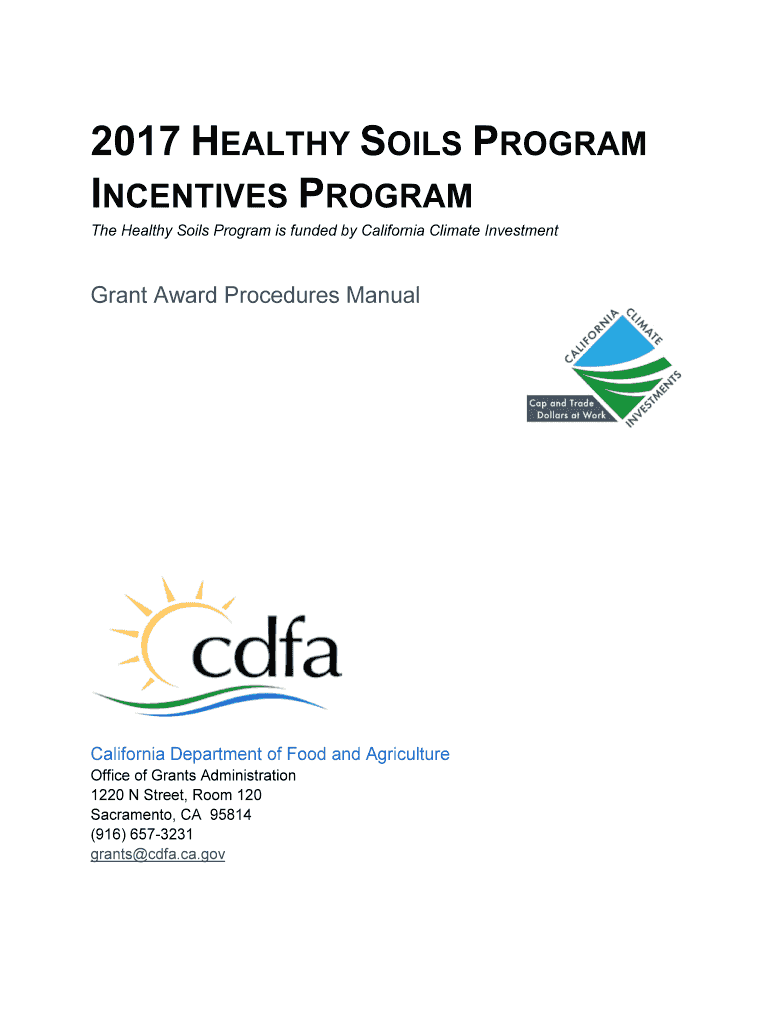The Healthy Soils Program is funded by California Climate Investment Grant Award Procedures Manual California Department of Food and AgricultureOffice